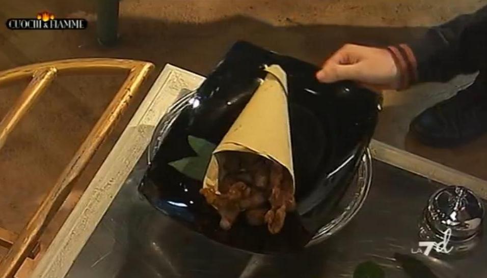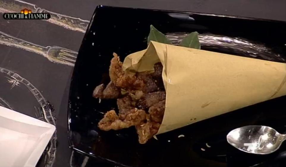 Dopo la Carbonara di mare, a “Cuochi e Fiamme” ho preparato questi saporitissimi fegatelli. Avevo provato poche volte la reticella, ma devo ammettere che il “fascino” del grasso è irresistibile! Croccante e gustosa, la reticella impreziosisce questi fegatelli panati, resi molto aromatici dall’alloro e dai semi di finocchio.