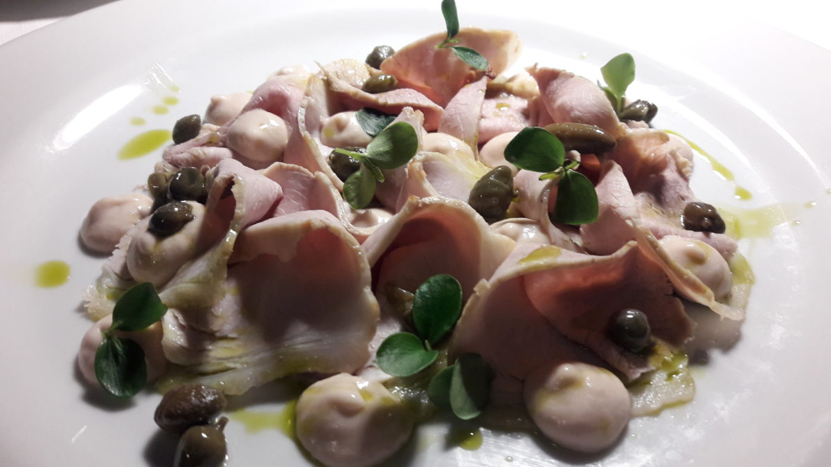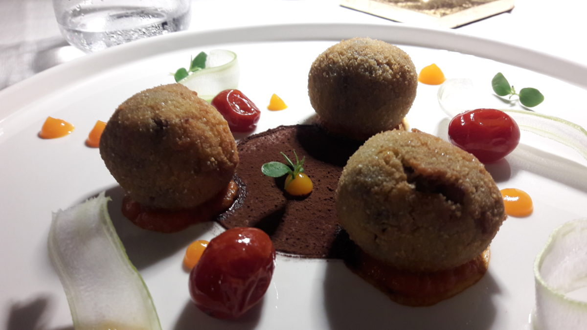 Ma cosa si può trovare nel menu del Jackie O’? alcuni piatti simbolo del decennio, riuniti anche in un nostalgico ma gustoso percorso di degustazione. La mia prova d’assaggio è iniziata con il Vitello tonnato, buono per cottura della carne e sapore e consistenza della salsa, con l’unico difetto d’avere qualche cappero di troppo che ne condizionava la sapidità. Ho poi provato le Sfere di coda, ottime polpette croccanti all’esterno ed umide all’interno, accompagnata dagli ingredienti tipici della ricetta (cacao, sedano, pomodoro) presentati in versione “scomposta”.